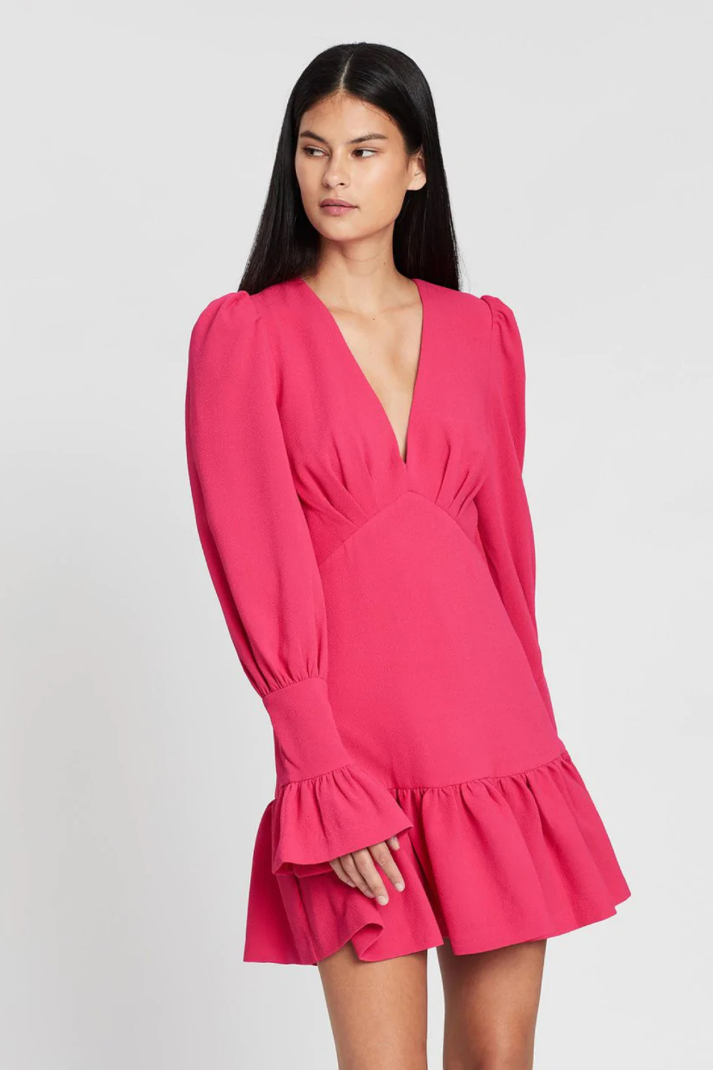 Uniquely beautiful, the Anna V Tulip Mini Dress captivates with its statement v neckline and ballooned sleeves.