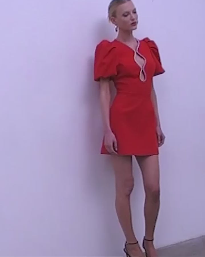 Karina Puff Sleeve Mini Dress RED by Rebecca Vallance